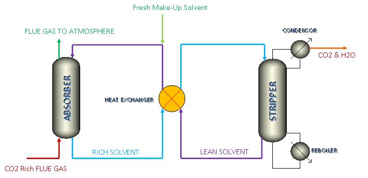 The capture of CO2 can be done by a variety of unit operations like absorption, adsorption, cryogenic distillation and membrane separation. Among all these options, inspite of being a costly and highly energy intensive capture technique, it is the absorption process that has been reported to have the widest commercial viability. This is primarily because this capture technology is the only method ready for large scale application on existing power plants. At VRI, we are focusing on the efficient capture of CO2 using absorption process. The absorption process involves the use of a solvent to absorb the CO2 from the flue gas of the power plant which is subsequently desorbed to obtain a relatively pure stream of CO2. The selection of a solvent needs to done based on two broad criteria viz., better economic performance for the survival of the plant and the selection of benign solvents and greener processes for ensuring sustainability of life on the planet. These objectives can be met by an effective integration of the following steps