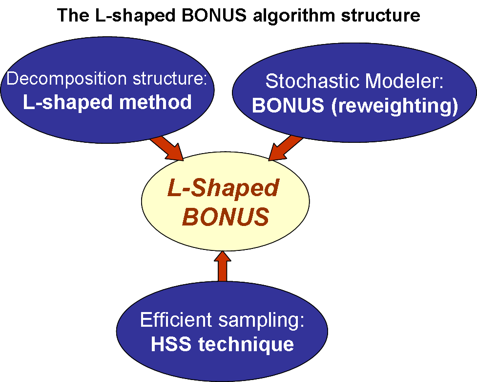 The L-shaped BONUS algorithm is proposed to solve the stochastic nonlinear programming (SNLP) problems in a computationally efficient manner. It derives its computational advantage by integrating the standard L-shaped method with BONUS algorithm, which has been proposed to solve SNLP problems by avoiding repeated model simulations. The details of various aspects of the L-shaped BONUS algorithm and their advantages are given below: