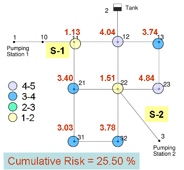 Risk before sensor placement: 45.47% Risk after sensor placement: 25.50%
