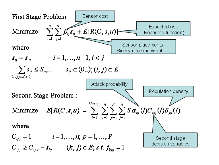 The problem is solved using the theory of optimization. Uncertainty is an important aspect to consider to make the solution robust. Stochasticity is introduced in the problem due to uncertain nodal demands and attack probabilities at various junction points in a water network. Consequently the placement optimization problem is converted into a stochastic optimization problem. The problem is converted into a two stage stochastic programming problem. L-shaped BONUS algorithm is used to solve the stochastic programming problem.