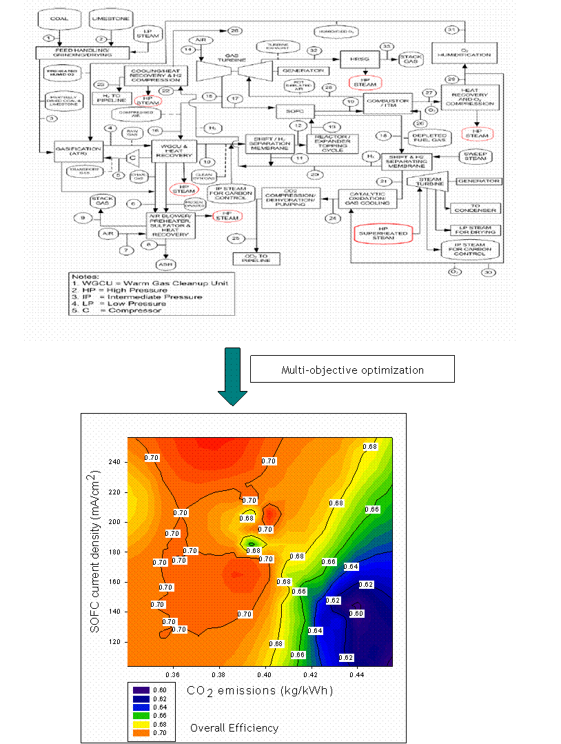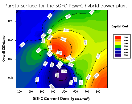 The hybrid fuel cell technologies are new and futuristic and hence the system level models used for simulating the fuel cells’ performance and other components like the syn-gas desulfurization reaction parameters (in this case the pre-exponential factor and activation energy) have significant uncertainties in them. Also, the performance curves of the SOFC would differ depending on the materials for the anode, cathode and electrolyte and analogously, the performance of a desulfurizer would vary depending on the substance used as the sorbent. A large number of materials need to be considered in the fuel cells for electrolyte issues, electrode performance issues, and for different configurations in order to obtain the desired properties. Hence the development in the area of new materials and other technologies where the performance and economic data is scarce and/or incomplete, calls for consideration of uncertainties in the design and optimization. The crucial steps in uncertainty analysis are characterization and quantification of uncertainty on which the validity of the analysis rests on. Characterization refers to expressing uncertainty in mathematical terms and quantification refers to the representation of uncertainty with probability distribution functions (PDF) illustrating the frequency of occurrence of each uncertainty.