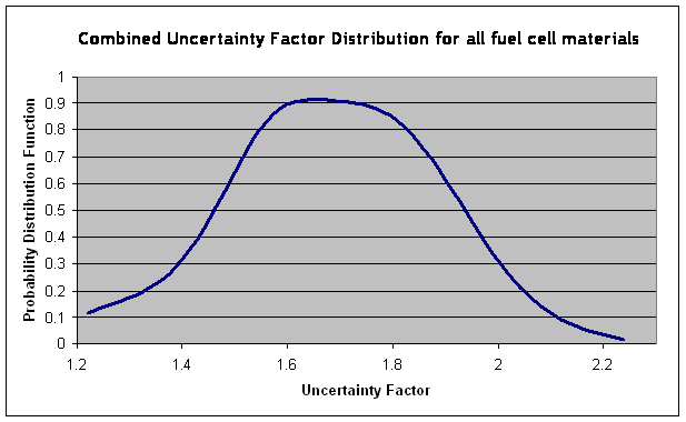 - Model uncertainty: Uncertainty in the parameters used in the SOFC. The UF distribution for a particular material represents the uncertainty associated with purely the model parameters without the 'noise' of material uncertainty.