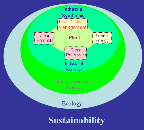 The work looks at the systems analysis perspective for the sustainability of the industrial and ecological systems together. The traditional industrial process design framework is extended to green process design and industrial ecology. For green process design, this involves starting the design decisions as early as chemical and material selection stage on one end, and managing and planning decisions, such as process selection, at the other end. The concept of overall sustainability though goes beyond industrial ecology and brings in the time dependent nature of the ecosystems. The sustainability of such systems is much difficult to quantify as compared to the industrial systems. The information theory based Fisher information parameter is a useful index. The management strategies for the ecosystems can then be evaluated using the Fisher information based theory.
