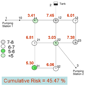 Risk before sensor placement: 45.47% Risk after sensor placement: 25.50%